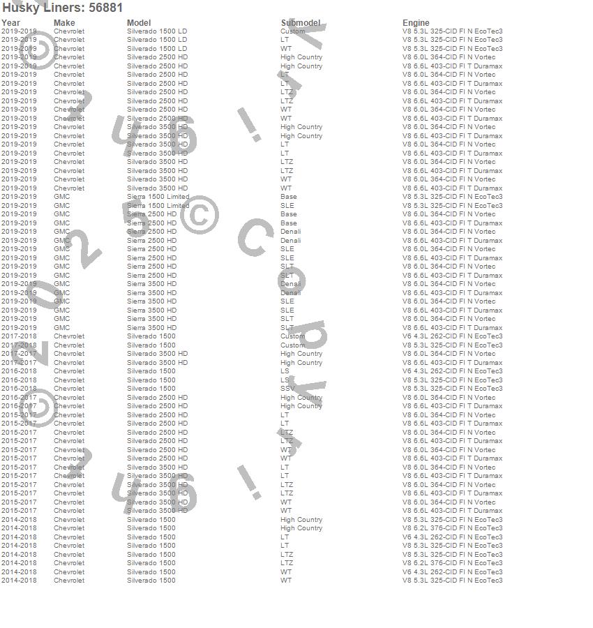 Below is an abreviated list of applications for the Custom Molded Mud Guards.