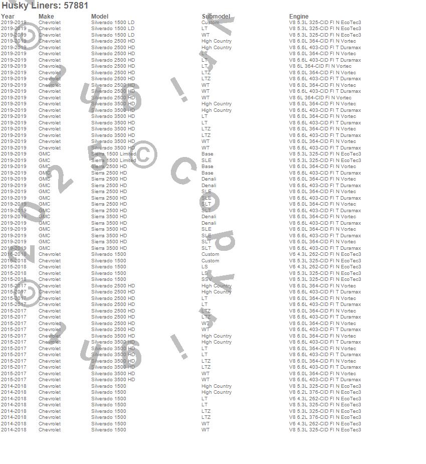 Below is an abreviated list of applications for the Custom Molded Mud Guards.