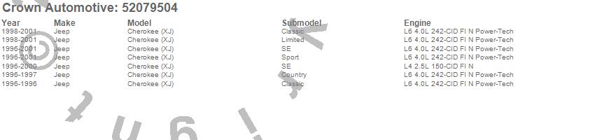 Crown Automotive is the premier manufacturer and distributor of quality replacement parts for Jeep® CJ™, Wrangler™, Cherokee™, Grand Cherokee™, Liberty™, and Commander™."From humble beginnings in 1963 in a small Boston storefront, Crown Automotive has consistently maintained its commitment to offering only quality parts and exceptional service. Today, with warehouses in Massachusetts, Georgia, Nevada, Spain, and the Czech Republic, totaling over 160,000 square feet, Crown Automotive continues to be the leader in quality replacement parts for Jeep® vehicles. With over 8,000 different parts in stock for Jeep® vehicles from 1942 on up, Crown has the largest stock of replacement parts for Jeep® vehicles, including factory-discontinued parts. In fact, many of the older Jeeps are still on (and off) the road thanks to Crown parts. The Crown line consists of axle, body, brake, clutch, cooling, driveline, electrical, engine, exhaust, fuel, steering, suspension, transmission and transfer case components. Crown Automotive also offers an exclusive line of component kits and accessory products. Because we know that Jeeps are driven harder than most other vehicles, we emphasize offering only quality parts. In fact, we test parts on Jeeps before distributing them to our dealers to insure that they meet our standards for quality. Crown also supports its entire line with a 12 month/12,000 mile warranty to insure our dealers and their customers of our commitment to offering quality parts. We know from experience that Jeep® owners would rather pay a little more for a good quality part that's backed by a strong guarantee. But we know that price is important as well. So, not only will you find Crown parts to be of exceptional quality, but you'll find them at a great price too.