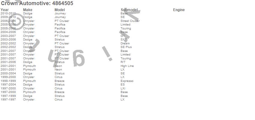Breeze, Cirrus, Journey, Neon, Pacifica, PT Cruiser, Stratus, Chrysler, Dodge, Plymouth, 2010, 2009, 2007, 2006, 2005, 2004, 2003, 2002, 2001, 2000 more…