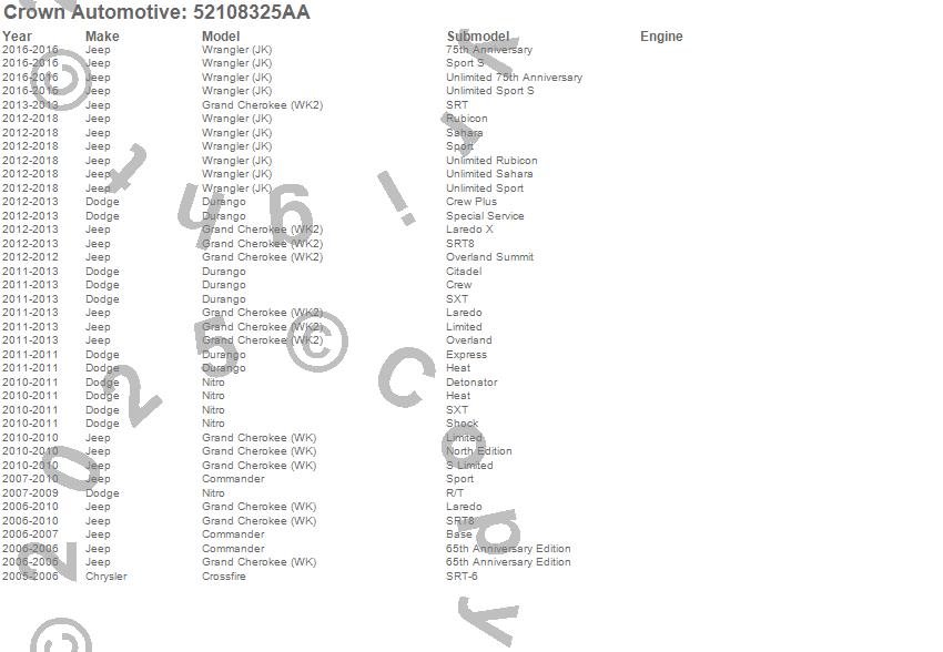 300, Challenger, Charger, Grand Cherokee (WK), Magnum, Chrysler, Dodge, Jeep, 2013, 2012, 2011, 2010, 2009, 2008, 2007, 2006, 2005 more…