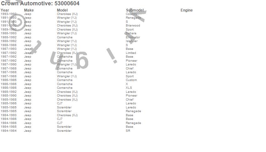 Cherokee (XJ), CJ7, Comanche, Scrambler, Wrangler (YJ), Jeep, 1993, 1992, 1991, 1990, 1989, 1988, 1987, 1986, 1985, 1984 more…