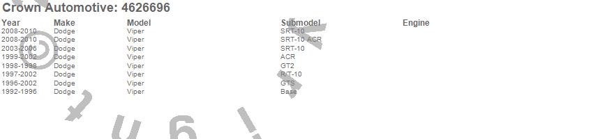 Viper, Dodge, 2010, 2009, 2008, 2006, 2005, 2004, 2003, 2002, 2001, 2000, 1999, 1998, 1997, 1996, 1995, 1994, 1993, 1992 more…