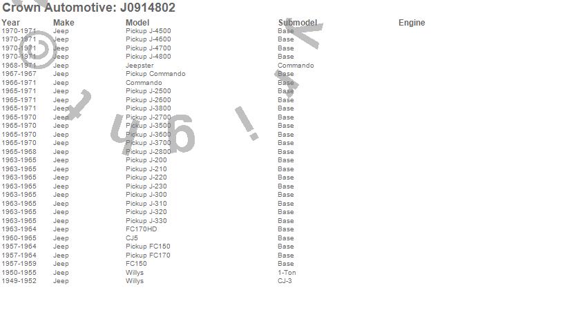 1-Ton Pickup, CJ-3A, CJ5, Commando, FC150, FC170, FC170HD, J-200, J-210, J-220, J-230, J-2500, J-2600, J-2700, J-2800, J-300, J-310, J-320, J-330, J-3500 more…