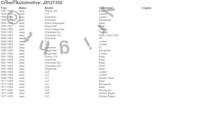 Cherokee (SJ), CJ5, CJ7, Grand Wagoneer, J10, J20, Scrambler, Wagoneer, Jeep, 1990, 1989, 1988, 1987, 1986, 1985, 1984, 1983, 1982, 1981, 1980 more…