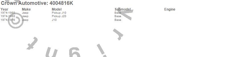 J10, J20, Jeep, 1988, 1987, 1986, 1985, 1984, 1983, 1982, 1981, 1980, 1979, 1978, 1977, 1976, 1975, 1974 more…