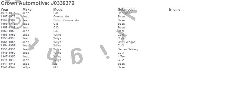 Crown Automotive is the premier manufacturer and distributor of quality replacement parts for Jeep® CJ™, Wrangler™, Cherokee™, Grand Cherokee™, Liberty™, and Commander™."From humble beginnings in 1963 in a small Boston storefront, Crown Automotive has consistently maintained its commitment to offering only quality parts and exceptional service. Today, with warehouses in Massachusetts, Georgia, Nevada, Spain, and the Czech Republic, totaling over 160,000 square feet, Crown Automotive continues to be the leader in quality replacement parts for Jeep® vehicles. With over 8,000 different parts in stock for Jeep® vehicles from 1942 on up, Crown has the largest stock of replacement parts for Jeep® vehicles, including factory-discontinued parts. In fact, many of the older Jeeps are still on (and off) the road thanks to Crown parts. The Crown line consists of axle, body, brake, clutch, cooling, driveline, electrical, engine, exhaust, fuel, steering, suspension, transmission and transfer case components. Crown Automotive also offers an exclusive line of component kits and accessory products. Because we know that Jeeps are driven harder than most other vehicles, we emphasize offering only quality parts. In fact, we test parts on Jeeps before distributing them to our dealers to insure that they meet our standards for quality. Crown also supports its entire line with a 12 month/12,000 mile warranty to insure our dealers and their customers of our commitment to offering quality parts. We know from experience that Jeep® owners would rather pay a little more for a good quality part that's backed by a strong guarantee. But we know that price is important as well. So, not only will you find Crown parts to be of exceptional quality, but you'll find them at a great price too.