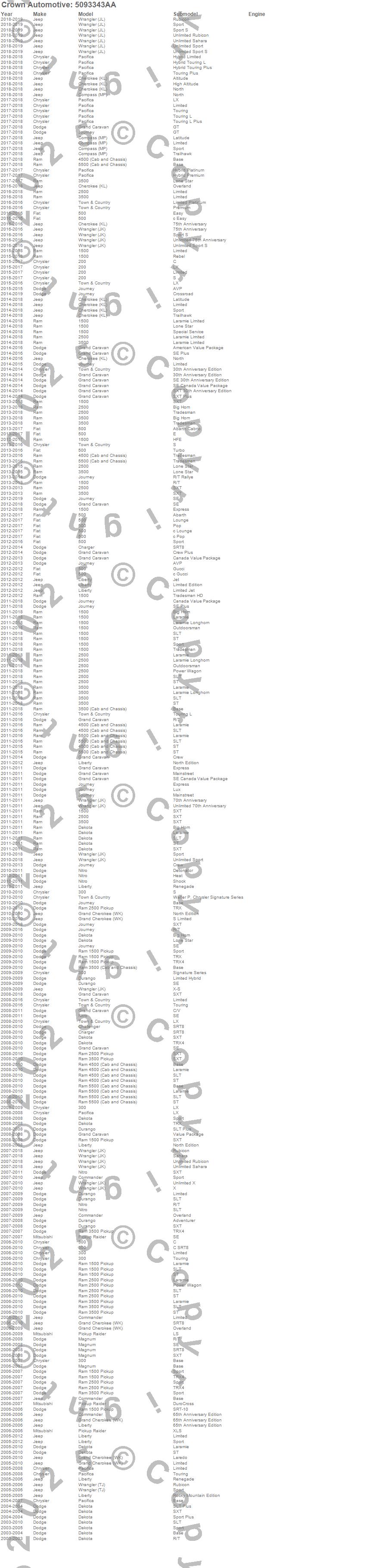 1500, 200, 2500, 300, 3500, 500, Caravan, Challenger, Charger, Cherokee (KL), Commander, Dakota, Durango, Grand Caravan, Grand Cherokee (WK), Journey, Liberty, Magnum, Nitro, Pacifica more…