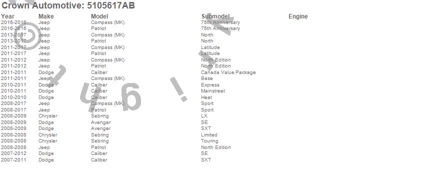 Avenger, Caliber, Compass, Patriot, Sebring, Chrysler, Dodge, Jeep, 2015, 2014, 2013, 2012, 2011, 2010, 2009, 2008, 2007 more…