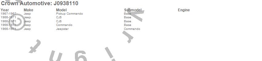 Crown Automotive is the premier manufacturer and distributor of quality replacement parts for Jeep® CJ™, Wrangler™, Cherokee™, Grand Cherokee™, Liberty™, and Commander™."From humble beginnings in 1963 in a small Boston storefront, Crown Automotive has consistently maintained its commitment to offering only quality parts and exceptional service. Today, with warehouses in Massachusetts, Georgia, Nevada, Spain, and the Czech Republic, totaling over 160,000 square feet, Crown Automotive continues to be the leader in quality replacement parts for Jeep® vehicles. With over 8,000 different parts in stock for Jeep® vehicles from 1942 on up, Crown has the largest stock of replacement parts for Jeep® vehicles, including factory-discontinued parts. In fact, many of the older Jeeps are still on (and off) the road thanks to Crown parts. The Crown line consists of axle, body, brake, clutch, cooling, driveline, electrical, engine, exhaust, fuel, steering, suspension, transmission and transfer case components. Crown Automotive also offers an exclusive line of component kits and accessory products. Because we know that Jeeps are driven harder than most other vehicles, we emphasize offering only quality parts. In fact, we test parts on Jeeps before distributing them to our dealers to insure that they meet our standards for quality. Crown also supports its entire line with a 12 month/12,000 mile warranty to insure our dealers and their customers of our commitment to offering quality parts. We know from experience that Jeep® owners would rather pay a little more for a good quality part that's backed by a strong guarantee. But we know that price is important as well. So, not only will you find Crown parts to be of exceptional quality, but you'll find them at a great price too.