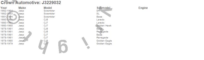 Crown Automotive is the premier manufacturer and distributor of quality replacement parts for Jeep® CJ™, Wrangler™, Cherokee™, Grand Cherokee™, Liberty™, and Commander™."From humble beginnings in 1963 in a small Boston storefront, Crown Automotive has consistently maintained its commitment to offering only quality parts and exceptional service. Today, with warehouses in Massachusetts, Georgia, Nevada, Spain, and the Czech Republic, totaling over 160,000 square feet, Crown Automotive continues to be the leader in quality replacement parts for Jeep® vehicles. With over 8,000 different parts in stock for Jeep® vehicles from 1942 on up, Crown has the largest stock of replacement parts for Jeep® vehicles, including factory-discontinued parts. In fact, many of the older Jeeps are still on (and off) the road thanks to Crown parts. The Crown line consists of axle, body, brake, clutch, cooling, driveline, electrical, engine, exhaust, fuel, steering, suspension, transmission and transfer case components. Crown Automotive also offers an exclusive line of component kits and accessory products. Because we know that Jeeps are driven harder than most other vehicles, we emphasize offering only quality parts. In fact, we test parts on Jeeps before distributing them to our dealers to insure that they meet our standards for quality. Crown also supports its entire line with a 12 month/12,000 mile warranty to insure our dealers and their customers of our commitment to offering quality parts. We know from experience that Jeep® owners would rather pay a little more for a good quality part that's backed by a strong guarantee. But we know that price is important as well. So, not only will you find Crown parts to be of exceptional quality, but you'll find them at a great price too.