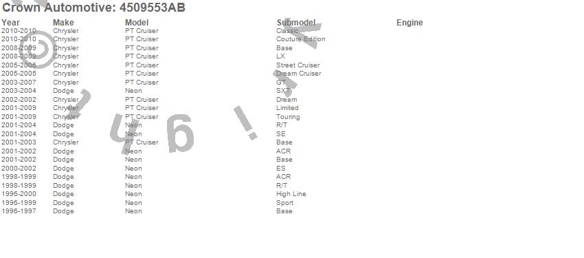 Neon, PT Cruiser, Chrysler, Dodge, 2010, 2009, 2008, 2007, 2006, 2005, 2004, 2003, 2002, 2001, 2000, 1999, 1998, 1997, 1996 more…
