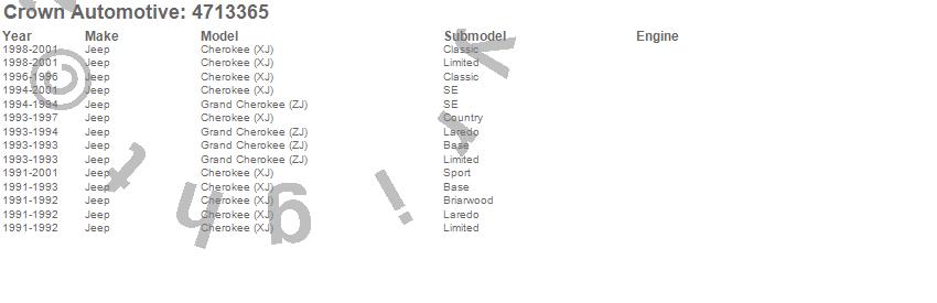 Crown Automotive is the premier manufacturer and distributor of quality replacement parts for Jeep® CJ™, Wrangler™, Cherokee™, Grand Cherokee™, Liberty™, and Commander™."From humble beginnings in 1963 in a small Boston storefront, Crown Automotive has consistently maintained its commitment to offering only quality parts and exceptional service. Today, with warehouses in Massachusetts, Georgia, Nevada, Spain, and the Czech Republic, totaling over 160,000 square feet, Crown Automotive continues to be the leader in quality replacement parts for Jeep® vehicles. With over 8,000 different parts in stock for Jeep® vehicles from 1942 on up, Crown has the largest stock of replacement parts for Jeep® vehicles, including factory-discontinued parts. In fact, many of the older Jeeps are still on (and off) the road thanks to Crown parts. The Crown line consists of axle, body, brake, clutch, cooling, driveline, electrical, engine, exhaust, fuel, steering, suspension, transmission and transfer case components. Crown Automotive also offers an exclusive line of component kits and accessory products. Because we know that Jeeps are driven harder than most other vehicles, we emphasize offering only quality parts. In fact, we test parts on Jeeps before distributing them to our dealers to insure that they meet our standards for quality. Crown also supports its entire line with a 12 month/12,000 mile warranty to insure our dealers and their customers of our commitment to offering quality parts. We know from experience that Jeep® owners would rather pay a little more for a good quality part that's backed by a strong guarantee. But we know that price is important as well. So, not only will you find Crown parts to be of exceptional quality, but you'll find them at a great price too.
