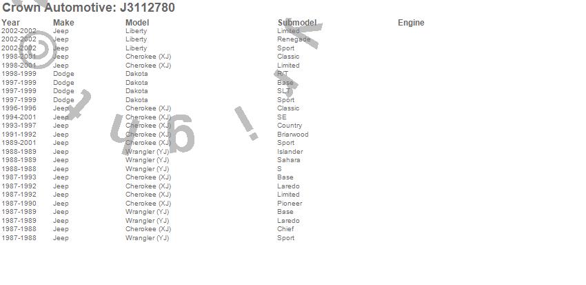 Crown Automotive is the premier manufacturer and distributor of quality replacement parts for Jeep® CJ™, Wrangler™, Cherokee™, Grand Cherokee™, Liberty™, and Commander™."From humble beginnings in 1963 in a small Boston storefront, Crown Automotive has consistently maintained its commitment to offering only quality parts and exceptional service. Today, with warehouses in Massachusetts, Georgia, Nevada, Spain, and the Czech Republic, totaling over 160,000 square feet, Crown Automotive continues to be the leader in quality replacement parts for Jeep® vehicles. With over 8,000 different parts in stock for Jeep® vehicles from 1942 on up, Crown has the largest stock of replacement parts for Jeep® vehicles, including factory-discontinued parts. In fact, many of the older Jeeps are still on (and off) the road thanks to Crown parts. The Crown line consists of axle, body, brake, clutch, cooling, driveline, electrical, engine, exhaust, fuel, steering, suspension, transmission and transfer case components. Crown Automotive also offers an exclusive line of component kits and accessory products. Because we know that Jeeps are driven harder than most other vehicles, we emphasize offering only quality parts. In fact, we test parts on Jeeps before distributing them to our dealers to insure that they meet our standards for quality. Crown also supports its entire line with a 12 month/12,000 mile warranty to insure our dealers and their customers of our commitment to offering quality parts. We know from experience that Jeep® owners would rather pay a little more for a good quality part that's backed by a strong guarantee. But we know that price is important as well. So, not only will you find Crown parts to be of exceptional quality, but you'll find them at a great price too.