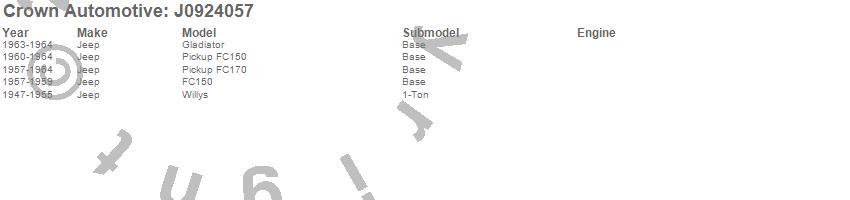 Crown Automotive is the premier manufacturer and distributor of quality replacement parts for Jeep® CJ™, Wrangler™, Cherokee™, Grand Cherokee™, Liberty™, and Commander™."From humble beginnings in 1963 in a small Boston storefront, Crown Automotive has consistently maintained its commitment to offering only quality parts and exceptional service. Today, with warehouses in Massachusetts, Georgia, Nevada, Spain, and the Czech Republic, totaling over 160,000 square feet, Crown Automotive continues to be the leader in quality replacement parts for Jeep® vehicles. With over 8,000 different parts in stock for Jeep® vehicles from 1942 on up, Crown has the largest stock of replacement parts for Jeep® vehicles, including factory-discontinued parts. In fact, many of the older Jeeps are still on (and off) the road thanks to Crown parts. The Crown line consists of axle, body, brake, clutch, cooling, driveline, electrical, engine, exhaust, fuel, steering, suspension, transmission and transfer case components. Crown Automotive also offers an exclusive line of component kits and accessory products. Because we know that Jeeps are driven harder than most other vehicles, we emphasize offering only quality parts. In fact, we test parts on Jeeps before distributing them to our dealers to insure that they meet our standards for quality. Crown also supports its entire line with a 12 month/12,000 mile warranty to insure our dealers and their customers of our commitment to offering quality parts. We know from experience that Jeep® owners would rather pay a little more for a good quality part that's backed by a strong guarantee. But we know that price is important as well. So, not only will you find Crown parts to be of exceptional quality, but you'll find them at a great price too.