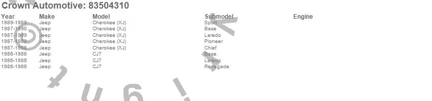 Crown Automotive is the premier manufacturer and distributor of quality replacement parts for Jeep® CJ™, Wrangler™, Cherokee™, Grand Cherokee™, Liberty™, and Commander™."From humble beginnings in 1963 in a small Boston storefront, Crown Automotive has consistently maintained its commitment to offering only quality parts and exceptional service. Today, with warehouses in Massachusetts, Georgia, Nevada, Spain, and the Czech Republic, totaling over 160,000 square feet, Crown Automotive continues to be the leader in quality replacement parts for Jeep® vehicles. With over 8,000 different parts in stock for Jeep® vehicles from 1942 on up, Crown has the largest stock of replacement parts for Jeep® vehicles, including factory-discontinued parts. In fact, many of the older Jeeps are still on (and off) the road thanks to Crown parts. The Crown line consists of axle, body, brake, clutch, cooling, driveline, electrical, engine, exhaust, fuel, steering, suspension, transmission and transfer case components. Crown Automotive also offers an exclusive line of component kits and accessory products. Because we know that Jeeps are driven harder than most other vehicles, we emphasize offering only quality parts. In fact, we test parts on Jeeps before distributing them to our dealers to insure that they meet our standards for quality. Crown also supports its entire line with a 12 month/12,000 mile warranty to insure our dealers and their customers of our commitment to offering quality parts. We know from experience that Jeep® owners would rather pay a little more for a good quality part that's backed by a strong guarantee. But we know that price is important as well. So, not only will you find Crown parts to be of exceptional quality, but you'll find them at a great price too.