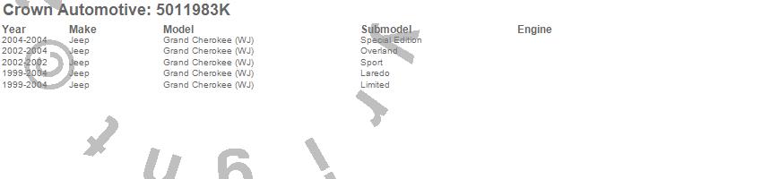 Crown Automotive is the premier manufacturer and distributor of quality replacement parts for Jeep® CJ™, Wrangler™, Cherokee™, Grand Cherokee™, Liberty™, and Commander™."From humble beginnings in 1963 in a small Boston storefront, Crown Automotive has consistently maintained its commitment to offering only quality parts and exceptional service. Today, with warehouses in Massachusetts, Georgia, Nevada, Spain, and the Czech Republic, totaling over 160,000 square feet, Crown Automotive continues to be the leader in quality replacement parts for Jeep® vehicles. With over 8,000 different parts in stock for Jeep® vehicles from 1942 on up, Crown has the largest stock of replacement parts for Jeep® vehicles, including factory-discontinued parts. In fact, many of the older Jeeps are still on (and off) the road thanks to Crown parts. The Crown line consists of axle, body, brake, clutch, cooling, driveline, electrical, engine, exhaust, fuel, steering, suspension, transmission and transfer case components. Crown Automotive also offers an exclusive line of component kits and accessory products. Because we know that Jeeps are driven harder than most other vehicles, we emphasize offering only quality parts. In fact, we test parts on Jeeps before distributing them to our dealers to insure that they meet our standards for quality. Crown also supports its entire line with a 12 month/12,000 mile warranty to insure our dealers and their customers of our commitment to offering quality parts. We know from experience that Jeep® owners would rather pay a little more for a good quality part that's backed by a strong guarantee. But we know that price is important as well. So, not only will you find Crown parts to be of exceptional quality, but you'll find them at a great price too.