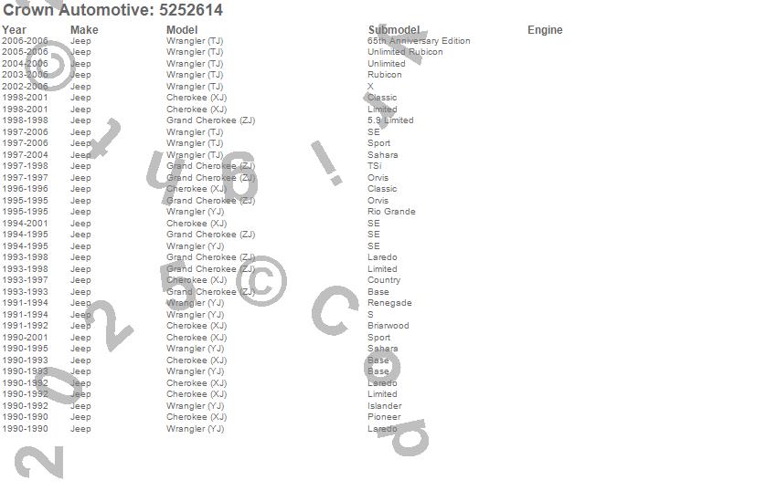 Cherokee (XJ), Grand Cherokee (ZJ), Wrangler (LJ), Wrangler (TJ), Wrangler (YJ), Jeep, 2006, 2005, 2004, 2003, 2002, 2001, 2000, 1999, 1998, 1997, 1996, 1995, 1994, 1993 more…