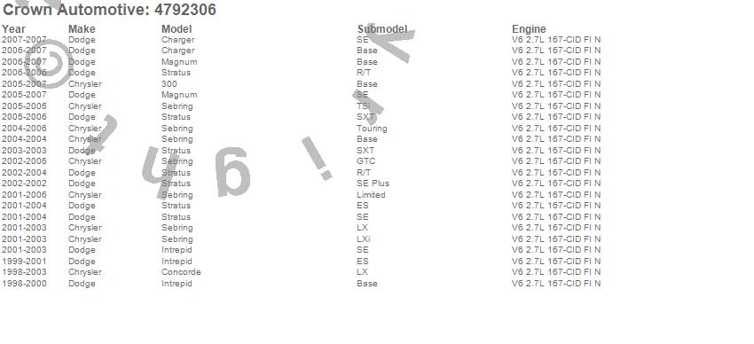 300, Charger, Concorde, Intrepid, Magnum, Sebring, Stratus, Chrysler, Dodge, 2007, 2006, 2005, 2004, 2003, 2002, 2001, 2000, 1999, 1998 more…