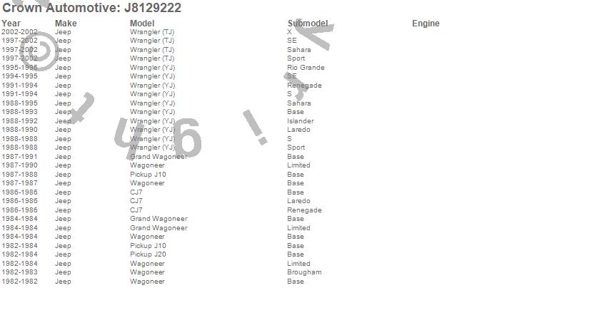 CJ7, Grand Wagoneer, J10, J20, Wagoneer, Wrangler (TJ), Wrangler (YJ), Jeep, 2002, 2001, 2000, 1999, 1998, 1997, 1995, 1994, 1993, 1992, 1991, 1990 more…
