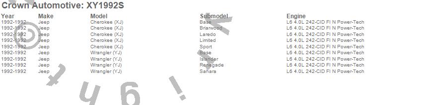 Crown Automotive is the premier manufacturer and distributor of quality replacement parts for Jeep® CJ™, Wrangler™, Cherokee™, Grand Cherokee™, Liberty™, and Commander™."From humble beginnings in 1963 in a small Boston storefront, Crown Automotive has consistently maintained its commitment to offering only quality parts and exceptional service. Today, with warehouses in Massachusetts, Georgia, Nevada, Spain, and the Czech Republic, totaling over 160,000 square feet, Crown Automotive continues to be the leader in quality replacement parts for Jeep® vehicles. With over 8,000 different parts in stock for Jeep® vehicles from 1942 on up, Crown has the largest stock of replacement parts for Jeep® vehicles, including factory-discontinued parts. In fact, many of the older Jeeps are still on (and off) the road thanks to Crown parts. The Crown line consists of axle, body, brake, clutch, cooling, driveline, electrical, engine, exhaust, fuel, steering, suspension, transmission and transfer case components. Crown Automotive also offers an exclusive line of component kits and accessory products. Because we know that Jeeps are driven harder than most other vehicles, we emphasize offering only quality parts. In fact, we test parts on Jeeps before distributing them to our dealers to insure that they meet our standards for quality. Crown also supports its entire line with a 12 month/12,000 mile warranty to insure our dealers and their customers of our commitment to offering quality parts. We know from experience that Jeep® owners would rather pay a little more for a good quality part that's backed by a strong guarantee. But we know that price is important as well. So, not only will you find Crown parts to be of exceptional quality, but you'll find them at a great price too.