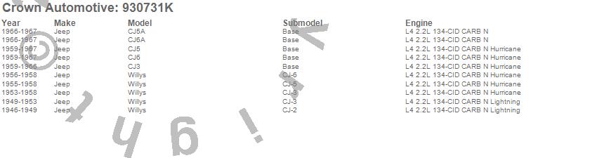 Crown Automotive is the premier manufacturer and distributor of quality replacement parts for Jeep® CJ™, Wrangler™, Cherokee™, Grand Cherokee™, Liberty™, and Commander™."From humble beginnings in 1963 in a small Boston storefront, Crown Automotive has consistently maintained its commitment to offering only quality parts and exceptional service. Today, with warehouses in Massachusetts, Georgia, Nevada, Spain, and the Czech Republic, totaling over 160,000 square feet, Crown Automotive continues to be the leader in quality replacement parts for Jeep® vehicles. With over 8,000 different parts in stock for Jeep® vehicles from 1942 on up, Crown has the largest stock of replacement parts for Jeep® vehicles, including factory-discontinued parts. In fact, many of the older Jeeps are still on (and off) the road thanks to Crown parts. The Crown line consists of axle, body, brake, clutch, cooling, driveline, electrical, engine, exhaust, fuel, steering, suspension, transmission and transfer case components. Crown Automotive also offers an exclusive line of component kits and accessory products. Because we know that Jeeps are driven harder than most other vehicles, we emphasize offering only quality parts. In fact, we test parts on Jeeps before distributing them to our dealers to insure that they meet our standards for quality. Crown also supports its entire line with a 12 month/12,000 mile warranty to insure our dealers and their customers of our commitment to offering quality parts. We know from experience that Jeep® owners would rather pay a little more for a good quality part that's backed by a strong guarantee. But we know that price is important as well. So, not only will you find Crown parts to be of exceptional quality, but you'll find them at a great price too.