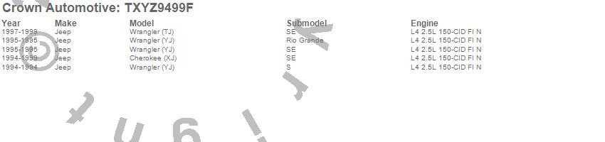 Cherokee (XJ), Wrangler (TJ), Wrangler (YJ), Jeep, 1999, 1998, 1997, 1996, 1995, 1994 more…