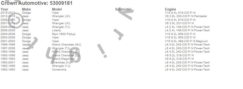 Cherokee (XJ), Comanche, Grand Cherokee (WJ), Grand Cherokee (ZJ), Grand Wagoneer, Liberty, Ram 1500, Viper, Wrangler (JK), Wrangler (TJ), Wrangler (YJ), Dodge, Jeep, 2015, 2014, 2013, 2012, 2011, 2010, 2009 more…
