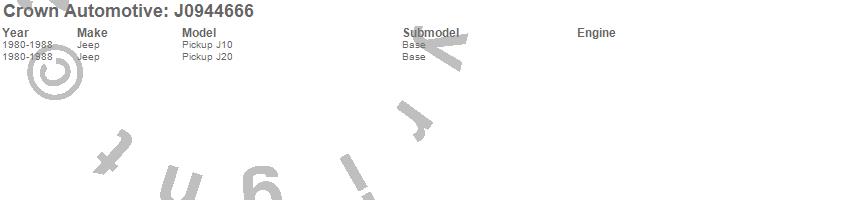 Crown Automotive is the premier manufacturer and distributor of quality replacement parts for Jeep® CJ™, Wrangler™, Cherokee™, Grand Cherokee™, Liberty™, and Commander™."From humble beginnings in 1963 in a small Boston storefront, Crown Automotive has consistently maintained its commitment to offering only quality parts and exceptional service. Today, with warehouses in Massachusetts, Georgia, Nevada, Spain, and the Czech Republic, totaling over 160,000 square feet, Crown Automotive continues to be the leader in quality replacement parts for Jeep® vehicles. With over 8,000 different parts in stock for Jeep® vehicles from 1942 on up, Crown has the largest stock of replacement parts for Jeep® vehicles, including factory-discontinued parts. In fact, many of the older Jeeps are still on (and off) the road thanks to Crown parts. The Crown line consists of axle, body, brake, clutch, cooling, driveline, electrical, engine, exhaust, fuel, steering, suspension, transmission and transfer case components. Crown Automotive also offers an exclusive line of component kits and accessory products. Because we know that Jeeps are driven harder than most other vehicles, we emphasize offering only quality parts. In fact, we test parts on Jeeps before distributing them to our dealers to insure that they meet our standards for quality. Crown also supports its entire line with a 12 month/12,000 mile warranty to insure our dealers and their customers of our commitment to offering quality parts. We know from experience that Jeep® owners would rather pay a little more for a good quality part that's backed by a strong guarantee. But we know that price is important as well. So, not only will you find Crown parts to be of exceptional quality, but you'll find them at a great price too.