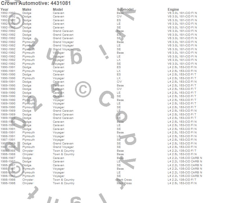 Caravan, Grand Caravan, Grand Voyager, Town & Country, Voyager, Chrysler, Dodge, Plymouth, 1992, 1991, 1990, 1989, 1988, 1987, 1986 more…