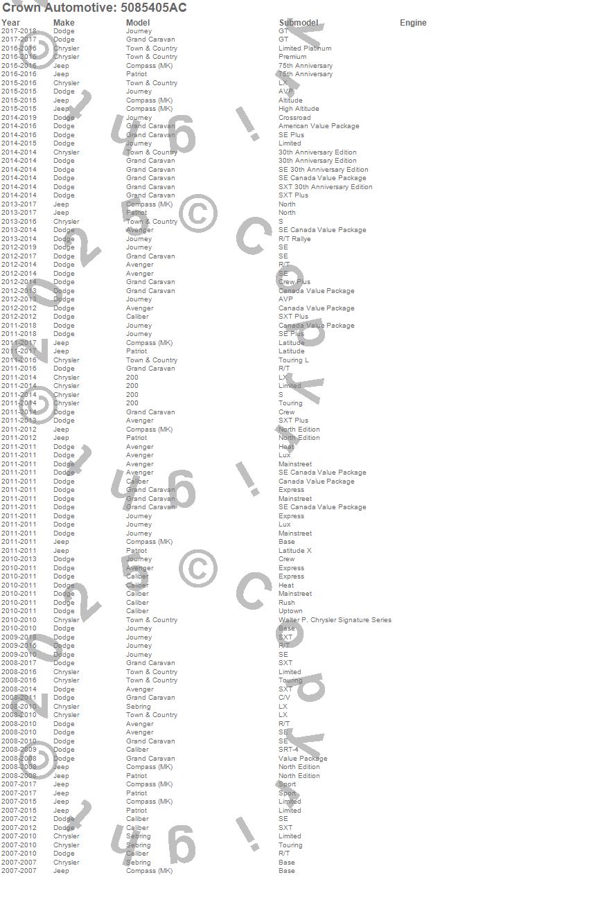 200, Avenger, Caliber, Caravan, Compass, Grand Caravan, Journey, Patriot, Sebring, Town & Country, Chrysler, Dodge, Jeep, 2015, 2014, 2013, 2012, 2011, 2010, 2009 more…