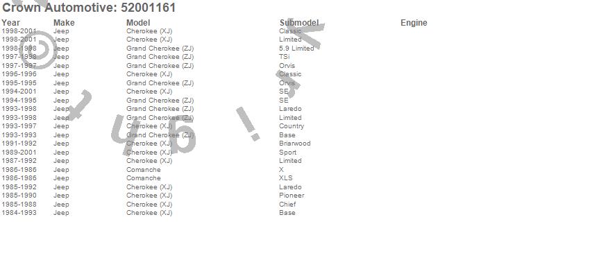 Cherokee (XJ), Comanche, Grand Cherokee (ZJ), Jeep, 2001, 2000, 1999, 1998, 1997, 1996, 1995, 1994, 1993, 1992, 1991, 1990, 1989, 1988, 1987, 1986 more…