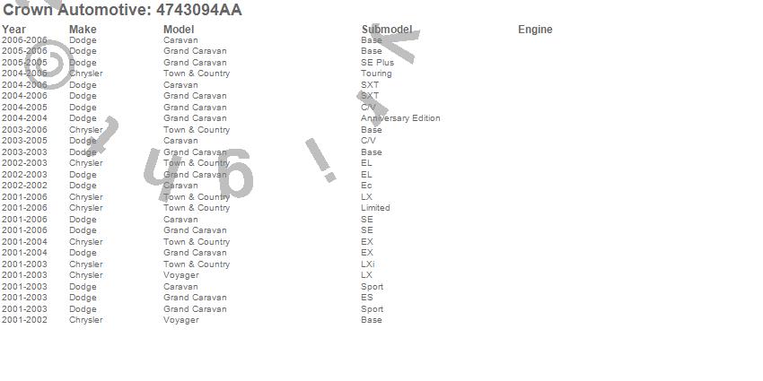 Caravan, Grand Caravan, Town & Country, Voyager, Chrysler, Dodge, 2006, 2005, 2004, 2003, 2002, 2001 more…