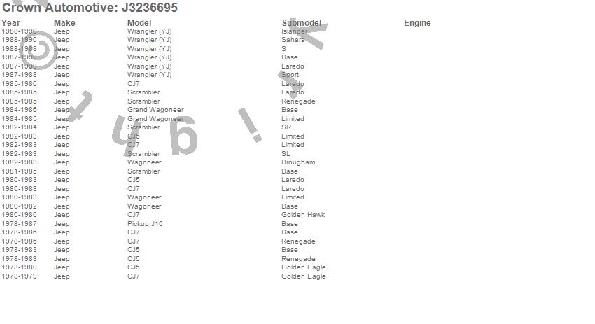 CJ5, CJ7, Grand Wagoneer, J10, Scrambler, Wagoneer, Wrangler (YJ), Jeep, 1990, 1989, 1988, 1987, 1986, 1985, 1984, 1983, 1982, 1981, 1980, 1979 more…