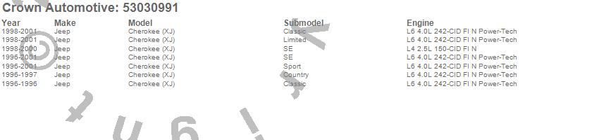 Crown Automotive is the premier manufacturer and distributor of quality replacement parts for Jeep® CJ™, Wrangler™, Cherokee™, Grand Cherokee™, Liberty™, and Commander™."From humble beginnings in 1963 in a small Boston storefront, Crown Automotive has consistently maintained its commitment to offering only quality parts and exceptional service. Today, with warehouses in Massachusetts, Georgia, Nevada, Spain, and the Czech Republic, totaling over 160,000 square feet, Crown Automotive continues to be the leader in quality replacement parts for Jeep® vehicles. With over 8,000 different parts in stock for Jeep® vehicles from 1942 on up, Crown has the largest stock of replacement parts for Jeep® vehicles, including factory-discontinued parts. In fact, many of the older Jeeps are still on (and off) the road thanks to Crown parts. The Crown line consists of axle, body, brake, clutch, cooling, driveline, electrical, engine, exhaust, fuel, steering, suspension, transmission and transfer case components. Crown Automotive also offers an exclusive line of component kits and accessory products. Because we know that Jeeps are driven harder than most other vehicles, we emphasize offering only quality parts. In fact, we test parts on Jeeps before distributing them to our dealers to insure that they meet our standards for quality. Crown also supports its entire line with a 12 month/12,000 mile warranty to insure our dealers and their customers of our commitment to offering quality parts. We know from experience that Jeep® owners would rather pay a little more for a good quality part that's backed by a strong guarantee. But we know that price is important as well. So, not only will you find Crown parts to be of exceptional quality, but you'll find them at a great price too.