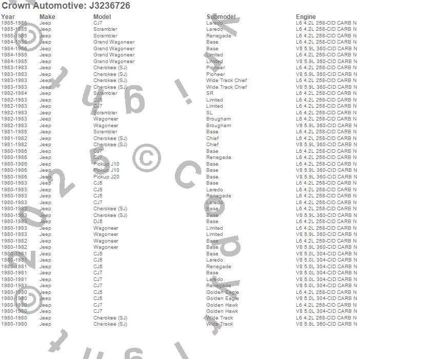 Cherokee (SJ), CJ5, CJ7, DJ5, Grand Wagoneer, J10, J20, Scrambler, Wagoneer, Jeep, 1986, 1985, 1984, 1983, 1982, 1981, 1980 more…