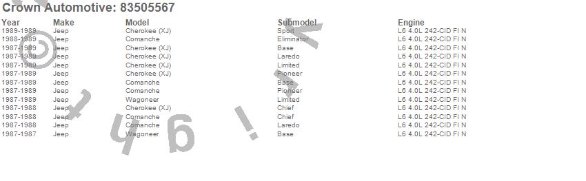 Crown Automotive is the premier manufacturer and distributor of quality replacement parts for Jeep® CJ™, Wrangler™, Cherokee™, Grand Cherokee™, Liberty™, and Commander™."From humble beginnings in 1963 in a small Boston storefront, Crown Automotive has consistently maintained its commitment to offering only quality parts and exceptional service. Today, with warehouses in Massachusetts, Georgia, Nevada, Spain, and the Czech Republic, totaling over 160,000 square feet, Crown Automotive continues to be the leader in quality replacement parts for Jeep® vehicles. With over 8,000 different parts in stock for Jeep® vehicles from 1942 on up, Crown has the largest stock of replacement parts for Jeep® vehicles, including factory-discontinued parts. In fact, many of the older Jeeps are still on (and off) the road thanks to Crown parts. The Crown line consists of axle, body, brake, clutch, cooling, driveline, electrical, engine, exhaust, fuel, steering, suspension, transmission and transfer case components. Crown Automotive also offers an exclusive line of component kits and accessory products. Because we know that Jeeps are driven harder than most other vehicles, we emphasize offering only quality parts. In fact, we test parts on Jeeps before distributing them to our dealers to insure that they meet our standards for quality. Crown also supports its entire line with a 12 month/12,000 mile warranty to insure our dealers and their customers of our commitment to offering quality parts. We know from experience that Jeep® owners would rather pay a little more for a good quality part that's backed by a strong guarantee. But we know that price is important as well. So, not only will you find Crown parts to be of exceptional quality, but you'll find them at a great price too.