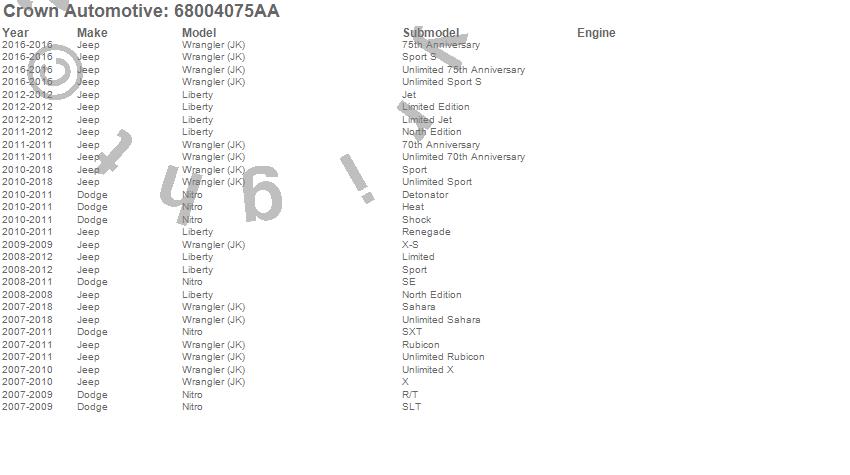 Liberty, Nitro, Wrangler (JK), Dodge, Jeep, 2015, 2014, 2013, 2012, 2011, 2010, 2009, 2008, 2007 more…