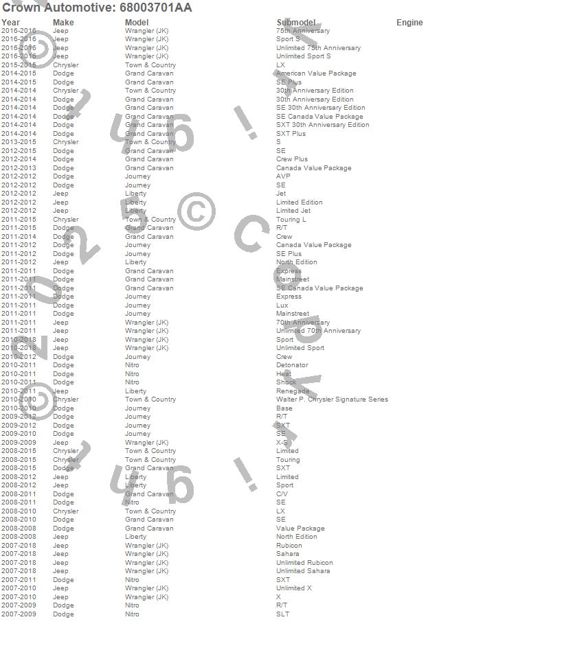 Caravan, Grand Caravan, Journey, Liberty, Nitro, Town & Country, Wrangler (JK), Chrysler, Dodge, Jeep, 2015, 2014, 2013, 2012, 2011, 2010, 2009, 2008, 2007 more…