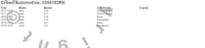 Crown Automotive is the premier manufacturer and distributor of quality replacement parts for Jeep® CJ™, Wrangler™, Cherokee™, Grand Cherokee™, Liberty™, and Commander™."From humble beginnings in 1963 in a small Boston storefront, Crown Automotive has consistently maintained its commitment to offering only quality parts and exceptional service. Today, with warehouses in Massachusetts, Georgia, Nevada, Spain, and the Czech Republic, totaling over 160,000 square feet, Crown Automotive continues to be the leader in quality replacement parts for Jeep® vehicles. With over 8,000 different parts in stock for Jeep® vehicles from 1942 on up, Crown has the largest stock of replacement parts for Jeep® vehicles, including factory-discontinued parts. In fact, many of the older Jeeps are still on (and off) the road thanks to Crown parts. The Crown line consists of axle, body, brake, clutch, cooling, driveline, electrical, engine, exhaust, fuel, steering, suspension, transmission and transfer case components. Crown Automotive also offers an exclusive line of component kits and accessory products. Because we know that Jeeps are driven harder than most other vehicles, we emphasize offering only quality parts. In fact, we test parts on Jeeps before distributing them to our dealers to insure that they meet our standards for quality. Crown also supports its entire line with a 12 month/12,000 mile warranty to insure our dealers and their customers of our commitment to offering quality parts. We know from experience that Jeep® owners would rather pay a little more for a good quality part that's backed by a strong guarantee. But we know that price is important as well. So, not only will you find Crown parts to be of exceptional quality, but you'll find them at a great price too.