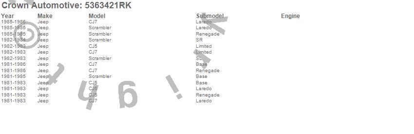 Crown Automotive is the premier manufacturer and distributor of quality replacement parts for Jeep® CJ™, Wrangler™, Cherokee™, Grand Cherokee™, Liberty™, and Commander™."From humble beginnings in 1963 in a small Boston storefront, Crown Automotive has consistently maintained its commitment to offering only quality parts and exceptional service. Today, with warehouses in Massachusetts, Georgia, Nevada, Spain, and the Czech Republic, totaling over 160,000 square feet, Crown Automotive continues to be the leader in quality replacement parts for Jeep® vehicles. With over 8,000 different parts in stock for Jeep® vehicles from 1942 on up, Crown has the largest stock of replacement parts for Jeep® vehicles, including factory-discontinued parts. In fact, many of the older Jeeps are still on (and off) the road thanks to Crown parts. The Crown line consists of axle, body, brake, clutch, cooling, driveline, electrical, engine, exhaust, fuel, steering, suspension, transmission and transfer case components. Crown Automotive also offers an exclusive line of component kits and accessory products. Because we know that Jeeps are driven harder than most other vehicles, we emphasize offering only quality parts. In fact, we test parts on Jeeps before distributing them to our dealers to insure that they meet our standards for quality. Crown also supports its entire line with a 12 month/12,000 mile warranty to insure our dealers and their customers of our commitment to offering quality parts. We know from experience that Jeep® owners would rather pay a little more for a good quality part that's backed by a strong guarantee. But we know that price is important as well. So, not only will you find Crown parts to be of exceptional quality, but you'll find them at a great price too.