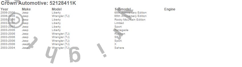 Crown Automotive is the premier manufacturer and distributor of quality replacement parts for Jeep® CJ™, Wrangler™, Cherokee™, Grand Cherokee™, Liberty™, and Commander™."From humble beginnings in 1963 in a small Boston storefront, Crown Automotive has consistently maintained its commitment to offering only quality parts and exceptional service. Today, with warehouses in Massachusetts, Georgia, Nevada, Spain, and the Czech Republic, totaling over 160,000 square feet, Crown Automotive continues to be the leader in quality replacement parts for Jeep® vehicles. With over 8,000 different parts in stock for Jeep® vehicles from 1942 on up, Crown has the largest stock of replacement parts for Jeep® vehicles, including factory-discontinued parts. In fact, many of the older Jeeps are still on (and off) the road thanks to Crown parts. The Crown line consists of axle, body, brake, clutch, cooling, driveline, electrical, engine, exhaust, fuel, steering, suspension, transmission and transfer case components. Crown Automotive also offers an exclusive line of component kits and accessory products. Because we know that Jeeps are driven harder than most other vehicles, we emphasize offering only quality parts. In fact, we test parts on Jeeps before distributing them to our dealers to insure that they meet our standards for quality. Crown also supports its entire line with a 12 month/12,000 mile warranty to insure our dealers and their customers of our commitment to offering quality parts. We know from experience that Jeep® owners would rather pay a little more for a good quality part that's backed by a strong guarantee. But we know that price is important as well. So, not only will you find Crown parts to be of exceptional quality, but you'll find them at a great price too.