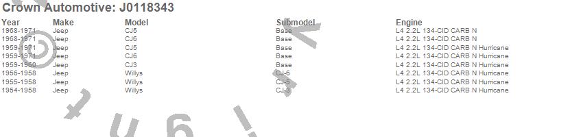 Crown Automotive is the premier manufacturer and distributor of quality replacement parts for Jeep® CJ™, Wrangler™, Cherokee™, Grand Cherokee™, Liberty™, and Commander™."From humble beginnings in 1963 in a small Boston storefront, Crown Automotive has consistently maintained its commitment to offering only quality parts and exceptional service. Today, with warehouses in Massachusetts, Georgia, Nevada, Spain, and the Czech Republic, totaling over 160,000 square feet, Crown Automotive continues to be the leader in quality replacement parts for Jeep® vehicles. With over 8,000 different parts in stock for Jeep® vehicles from 1942 on up, Crown has the largest stock of replacement parts for Jeep® vehicles, including factory-discontinued parts. In fact, many of the older Jeeps are still on (and off) the road thanks to Crown parts. The Crown line consists of axle, body, brake, clutch, cooling, driveline, electrical, engine, exhaust, fuel, steering, suspension, transmission and transfer case components. Crown Automotive also offers an exclusive line of component kits and accessory products. Because we know that Jeeps are driven harder than most other vehicles, we emphasize offering only quality parts. In fact, we test parts on Jeeps before distributing them to our dealers to insure that they meet our standards for quality. Crown also supports its entire line with a 12 month/12,000 mile warranty to insure our dealers and their customers of our commitment to offering quality parts. We know from experience that Jeep® owners would rather pay a little more for a good quality part that's backed by a strong guarantee. But we know that price is important as well. So, not only will you find Crown parts to be of exceptional quality, but you'll find them at a great price too.