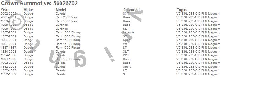 Dakota, Durango, Ram 1500, Ram 1500 Van, Ram 2500 Van, Dodge, 2003, 2002, 2001, 2000, 1999, 1998, 1997, 1996, 1995, 1994, 1993, 1992 more…