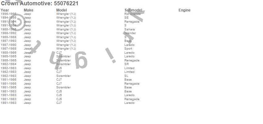 CJ5, CJ7, Scrambler, Wrangler (YJ), Jeep, 1995, 1994, 1993, 1992, 1991, 1990, 1989, 1988, 1987, 1986, 1985, 1984, 1983, 1982, 1981 more…