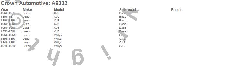 Crown Automotive is the premier manufacturer and distributor of quality replacement parts for Jeep® CJ™, Wrangler™, Cherokee™, Grand Cherokee™, Liberty™, and Commander™."From humble beginnings in 1963 in a small Boston storefront, Crown Automotive has consistently maintained its commitment to offering only quality parts and exceptional service. Today, with warehouses in Massachusetts, Georgia, Nevada, Spain, and the Czech Republic, totaling over 160,000 square feet, Crown Automotive continues to be the leader in quality replacement parts for Jeep® vehicles. With over 8,000 different parts in stock for Jeep® vehicles from 1942 on up, Crown has the largest stock of replacement parts for Jeep® vehicles, including factory-discontinued parts. In fact, many of the older Jeeps are still on (and off) the road thanks to Crown parts. The Crown line consists of axle, body, brake, clutch, cooling, driveline, electrical, engine, exhaust, fuel, steering, suspension, transmission and transfer case components. Crown Automotive also offers an exclusive line of component kits and accessory products. Because we know that Jeeps are driven harder than most other vehicles, we emphasize offering only quality parts. In fact, we test parts on Jeeps before distributing them to our dealers to insure that they meet our standards for quality. Crown also supports its entire line with a 12 month/12,000 mile warranty to insure our dealers and their customers of our commitment to offering quality parts. We know from experience that Jeep® owners would rather pay a little more for a good quality part that's backed by a strong guarantee. But we know that price is important as well. So, not only will you find Crown parts to be of exceptional quality, but you'll find them at a great price too.