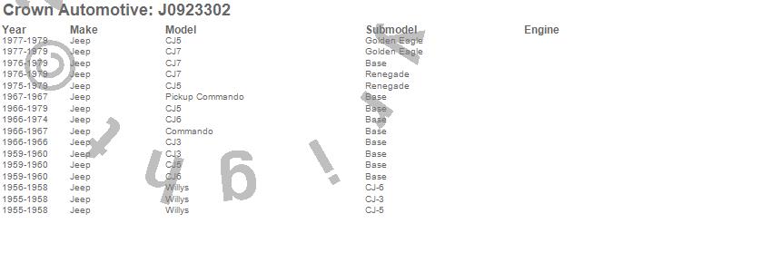 Crown Automotive is the premier manufacturer and distributor of quality replacement parts for Jeep® CJ™, Wrangler™, Cherokee™, Grand Cherokee™, Liberty™, and Commander™."From humble beginnings in 1963 in a small Boston storefront, Crown Automotive has consistently maintained its commitment to offering only quality parts and exceptional service. Today, with warehouses in Massachusetts, Georgia, Nevada, Spain, and the Czech Republic, totaling over 160,000 square feet, Crown Automotive continues to be the leader in quality replacement parts for Jeep® vehicles. With over 8,000 different parts in stock for Jeep® vehicles from 1942 on up, Crown has the largest stock of replacement parts for Jeep® vehicles, including factory-discontinued parts. In fact, many of the older Jeeps are still on (and off) the road thanks to Crown parts. The Crown line consists of axle, body, brake, clutch, cooling, driveline, electrical, engine, exhaust, fuel, steering, suspension, transmission and transfer case components. Crown Automotive also offers an exclusive line of component kits and accessory products. Because we know that Jeeps are driven harder than most other vehicles, we emphasize offering only quality parts. In fact, we test parts on Jeeps before distributing them to our dealers to insure that they meet our standards for quality. Crown also supports its entire line with a 12 month/12,000 mile warranty to insure our dealers and their customers of our commitment to offering quality parts. We know from experience that Jeep® owners would rather pay a little more for a good quality part that's backed by a strong guarantee. But we know that price is important as well. So, not only will you find Crown parts to be of exceptional quality, but you'll find them at a great price too.