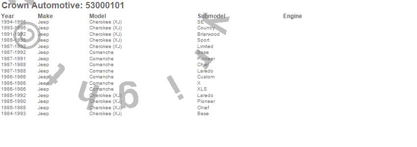 Cherokee (XJ), Comanche, Jeep, 1995, 1994, 1993, 1992, 1991, 1990, 1989, 1988, 1987, 1986, 1985, 1984 more…