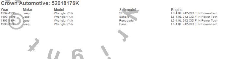 Crown Automotive is the premier manufacturer and distributor of quality replacement parts for Jeep® CJ™, Wrangler™, Cherokee™, Grand Cherokee™, Liberty™, and Commander™."From humble beginnings in 1963 in a small Boston storefront, Crown Automotive has consistently maintained its commitment to offering only quality parts and exceptional service. Today, with warehouses in Massachusetts, Georgia, Nevada, Spain, and the Czech Republic, totaling over 160,000 square feet, Crown Automotive continues to be the leader in quality replacement parts for Jeep® vehicles. With over 8,000 different parts in stock for Jeep® vehicles from 1942 on up, Crown has the largest stock of replacement parts for Jeep® vehicles, including factory-discontinued parts. In fact, many of the older Jeeps are still on (and off) the road thanks to Crown parts. The Crown line consists of axle, body, brake, clutch, cooling, driveline, electrical, engine, exhaust, fuel, steering, suspension, transmission and transfer case components. Crown Automotive also offers an exclusive line of component kits and accessory products. Because we know that Jeeps are driven harder than most other vehicles, we emphasize offering only quality parts. In fact, we test parts on Jeeps before distributing them to our dealers to insure that they meet our standards for quality. Crown also supports its entire line with a 12 month/12,000 mile warranty to insure our dealers and their customers of our commitment to offering quality parts. We know from experience that Jeep® owners would rather pay a little more for a good quality part that's backed by a strong guarantee. But we know that price is important as well. So, not only will you find Crown parts to be of exceptional quality, but you'll find them at a great price too.