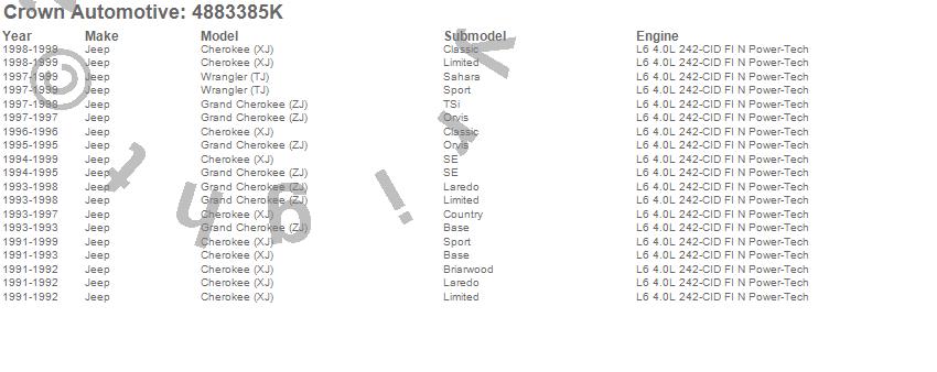 Crown Automotive is the premier manufacturer and distributor of quality replacement parts for Jeep® CJ™, Wrangler™, Cherokee™, Grand Cherokee™, Liberty™, and Commander™."From humble beginnings in 1963 in a small Boston storefront, Crown Automotive has consistently maintained its commitment to offering only quality parts and exceptional service. Today, with warehouses in Massachusetts, Georgia, Nevada, Spain, and the Czech Republic, totaling over 160,000 square feet, Crown Automotive continues to be the leader in quality replacement parts for Jeep® vehicles. With over 8,000 different parts in stock for Jeep® vehicles from 1942 on up, Crown has the largest stock of replacement parts for Jeep® vehicles, including factory-discontinued parts. In fact, many of the older Jeeps are still on (and off) the road thanks to Crown parts. The Crown line consists of axle, body, brake, clutch, cooling, driveline, electrical, engine, exhaust, fuel, steering, suspension, transmission and transfer case components. Crown Automotive also offers an exclusive line of component kits and accessory products. Because we know that Jeeps are driven harder than most other vehicles, we emphasize offering only quality parts. In fact, we test parts on Jeeps before distributing them to our dealers to insure that they meet our standards for quality. Crown also supports its entire line with a 12 month/12,000 mile warranty to insure our dealers and their customers of our commitment to offering quality parts. We know from experience that Jeep® owners would rather pay a little more for a good quality part that's backed by a strong guarantee. But we know that price is important as well. So, not only will you find Crown parts to be of exceptional quality, but you'll find them at a great price too.